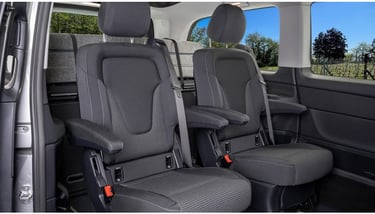 Alege scaunele de care ai nevoie pentru rutina ta zilnică. Până la 4 scaune individuale confortabile în Clasa V sau maximum două banchete de 3 persoane în Vito îți vor garanta o călătorie plăcută și confortabilă.