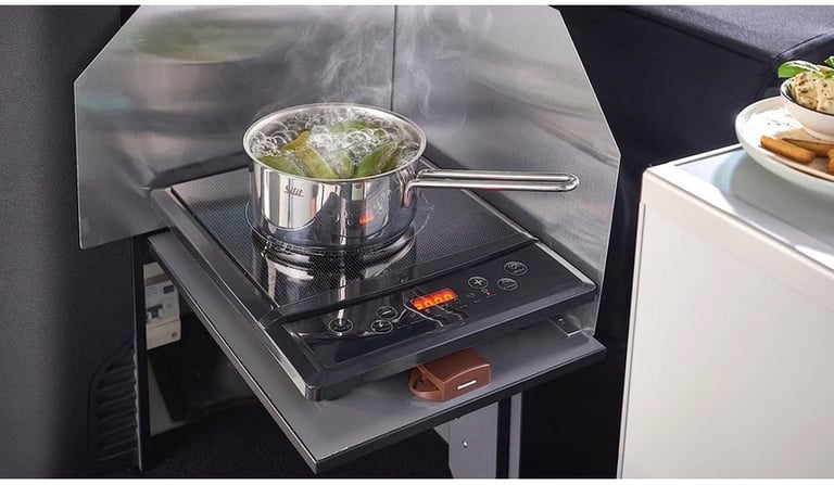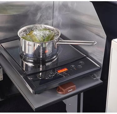 Acum vei fi mereu bucătarul-șef VANSTER este echipat standard cu o plită cu inducție și o priză externă CEE de 230V. Cu aceasta, poți pregăti fiecare masă într-o clipă