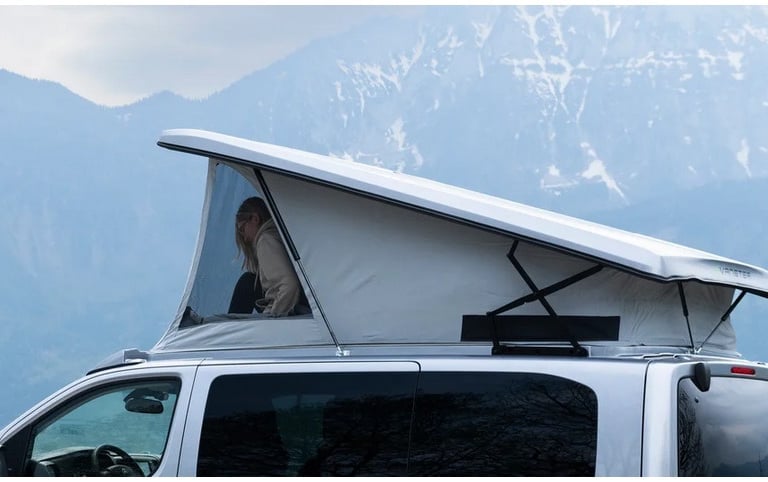 Acoperișul rabatabil VANSTER vă permite să vă instalați cu ușurință patul oriunde doriți. Spațiul confortabil al patului (dimensiuni 190 x 1m) este conceput pentru a vă cuibări și a vă relaxa împreună